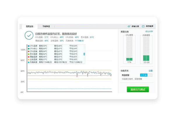 基于工控机自带ecloud系统,完整的实现设备各部件的温度、电压、转速等指标监控。